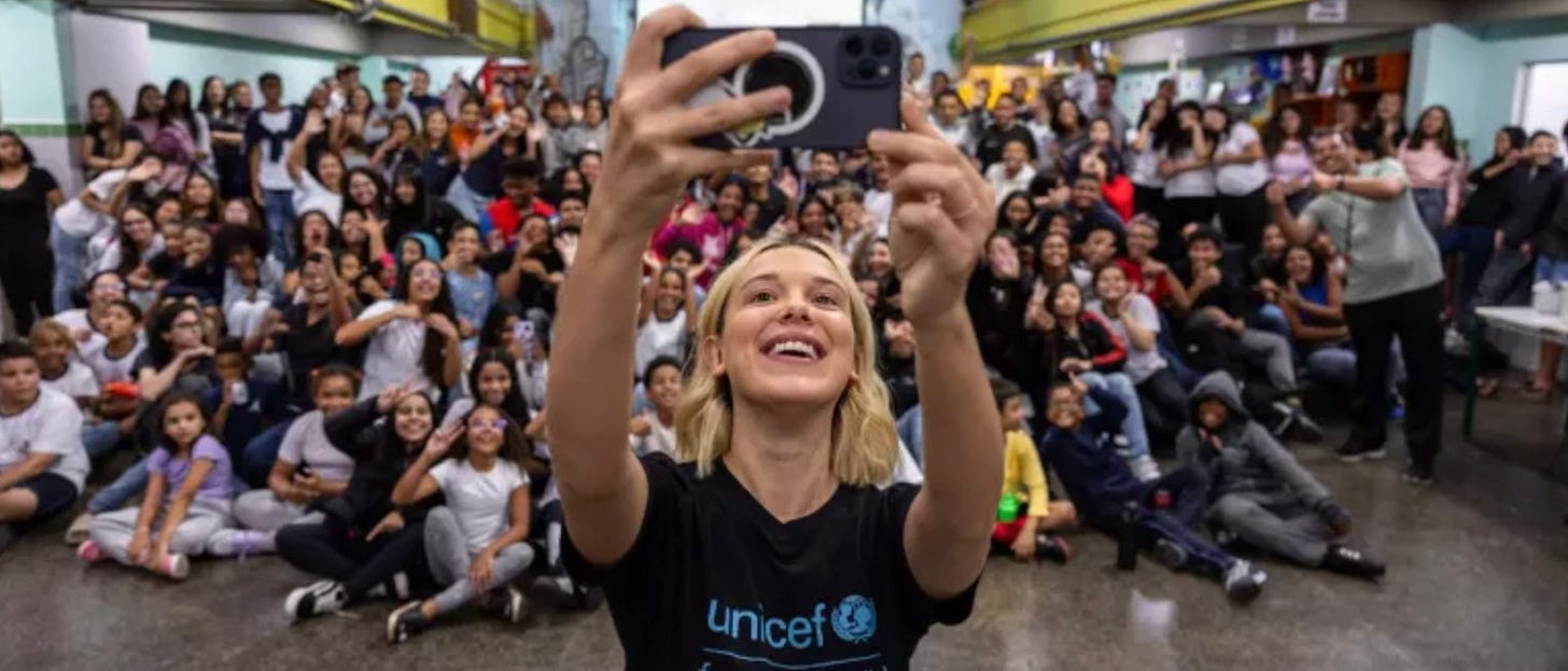 UNICEF Goodwill Ambassador Millie Bobby Brown visits a school in São Paulo, 2025